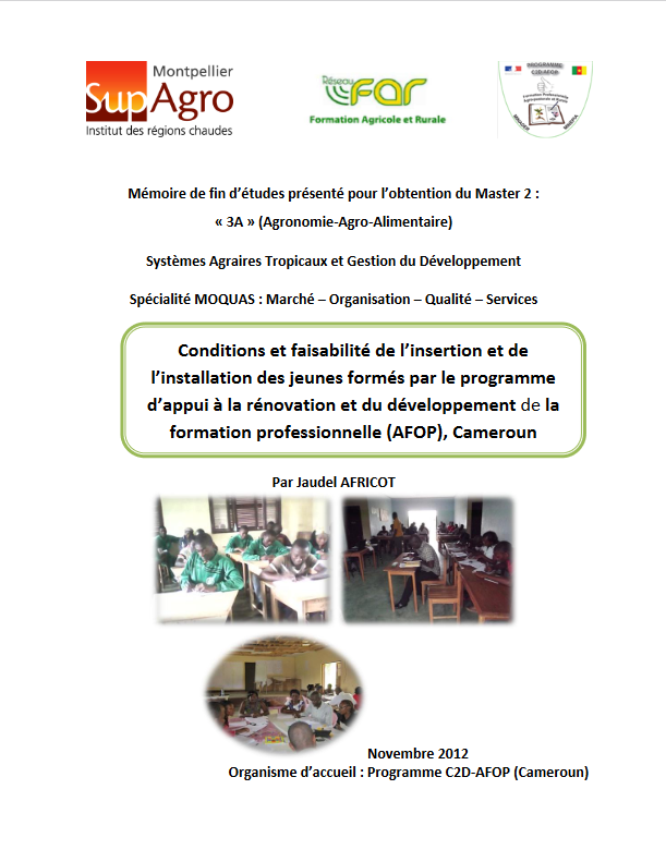 Conditions et faisabilité de l’insertion et de l’installation des jeunes formés par le programme d’appui à la rénovation et du développement de la formation professionnelle (AFOP), Cameroun