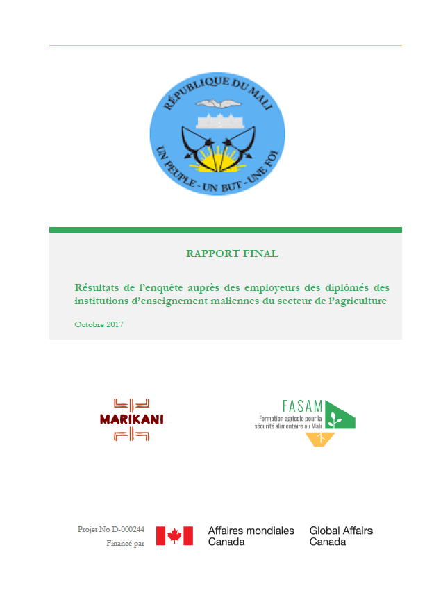 Enquête auprès des employeurs des diplômés des institutions d’enseignement maliennes du secteur de l’agriculture
