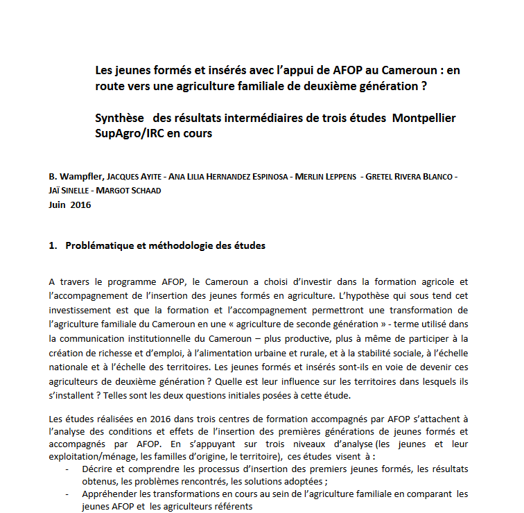 Les jeunes formés et insérés avec l’appui de AFOP au Cameroun : en route vers une agriculture familiale de deuxième génération ?